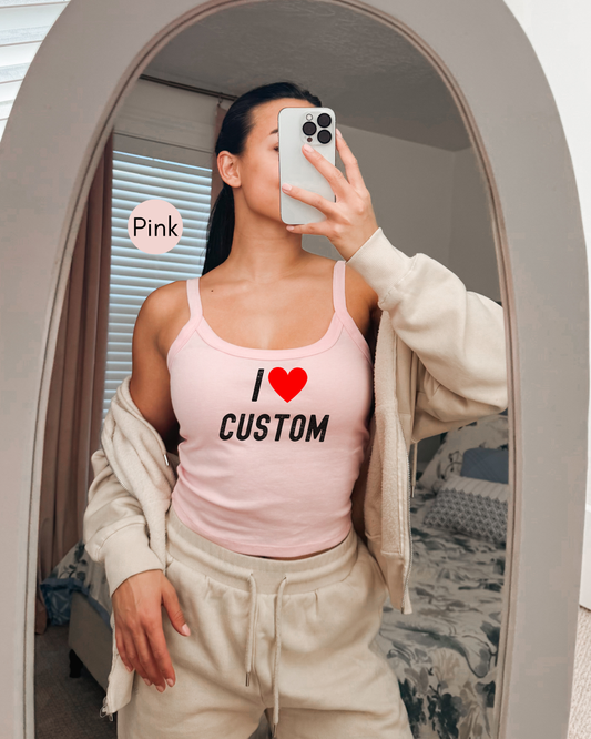Front and Back I Love Custom Y2K Spaghetti Strap Tank Top, Personalized I Heart Any Text Tank Top, I Heart Custom Tank Top