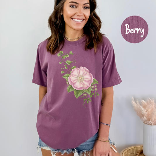 Vintage Leuchtendes Rosa Blumen Shirt, Florale Ästhetische Wohlfühlfarben, Geschenk für Sie, Naturliebhaber T-Shirt, Botanisches Outfit