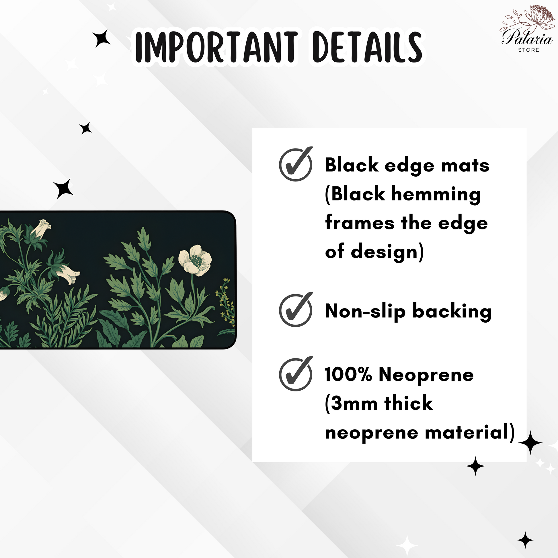 Vintage Sage Green Plants Desk Mat, Large Extended Gaming Mouse Pad, Dark Floral Mouse Pad, Home Office Decor