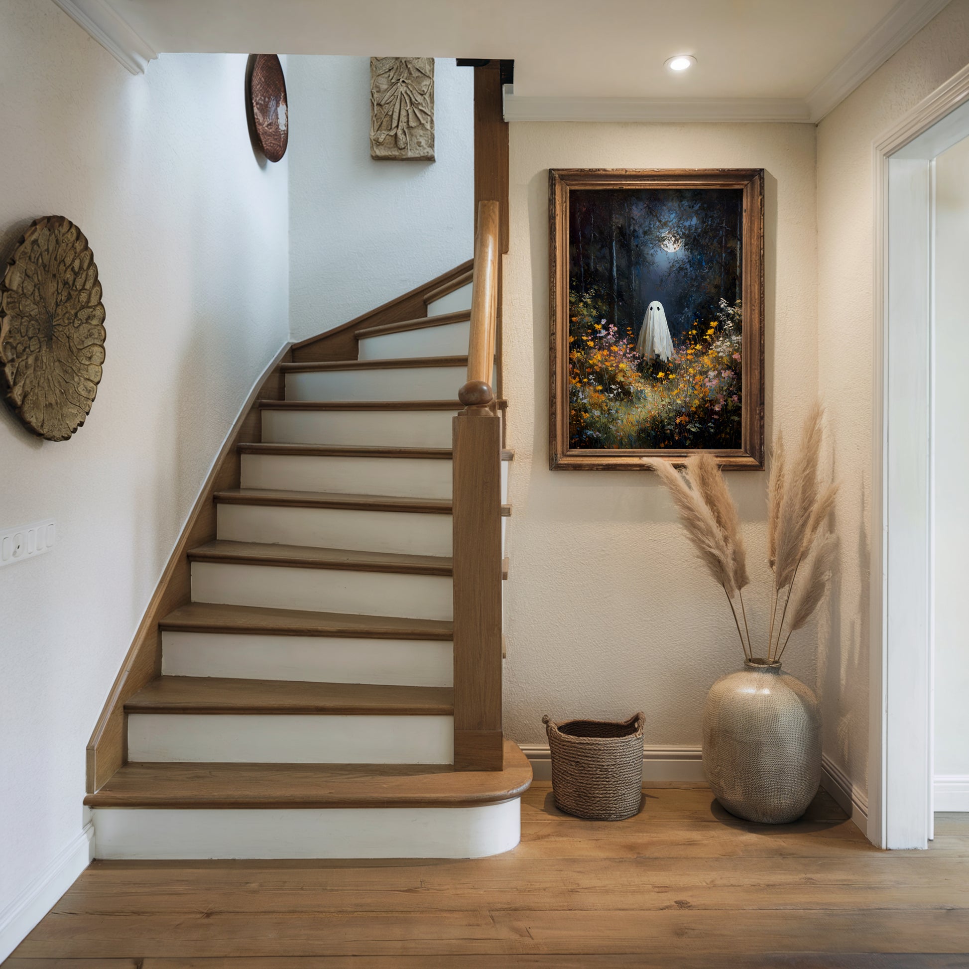 Ghost in Moonlit Wildflower Forest Poster, Ethereal Ghost Print, Home Decor Wall Art, Unframed