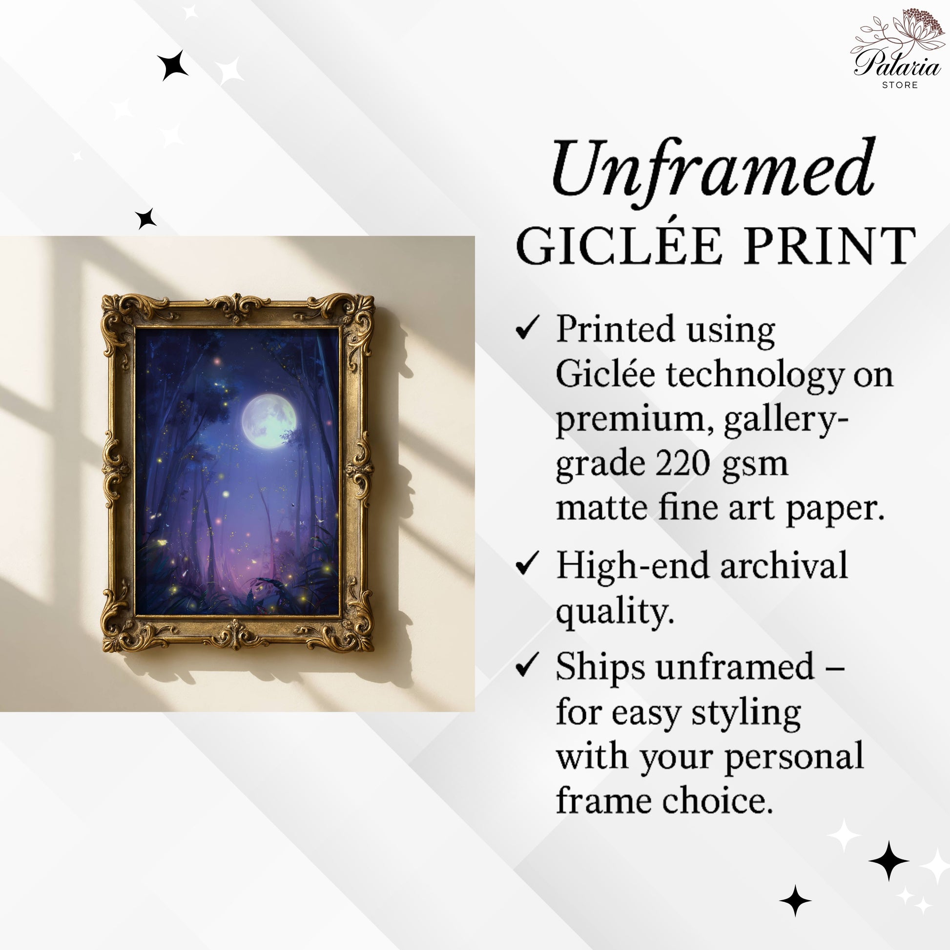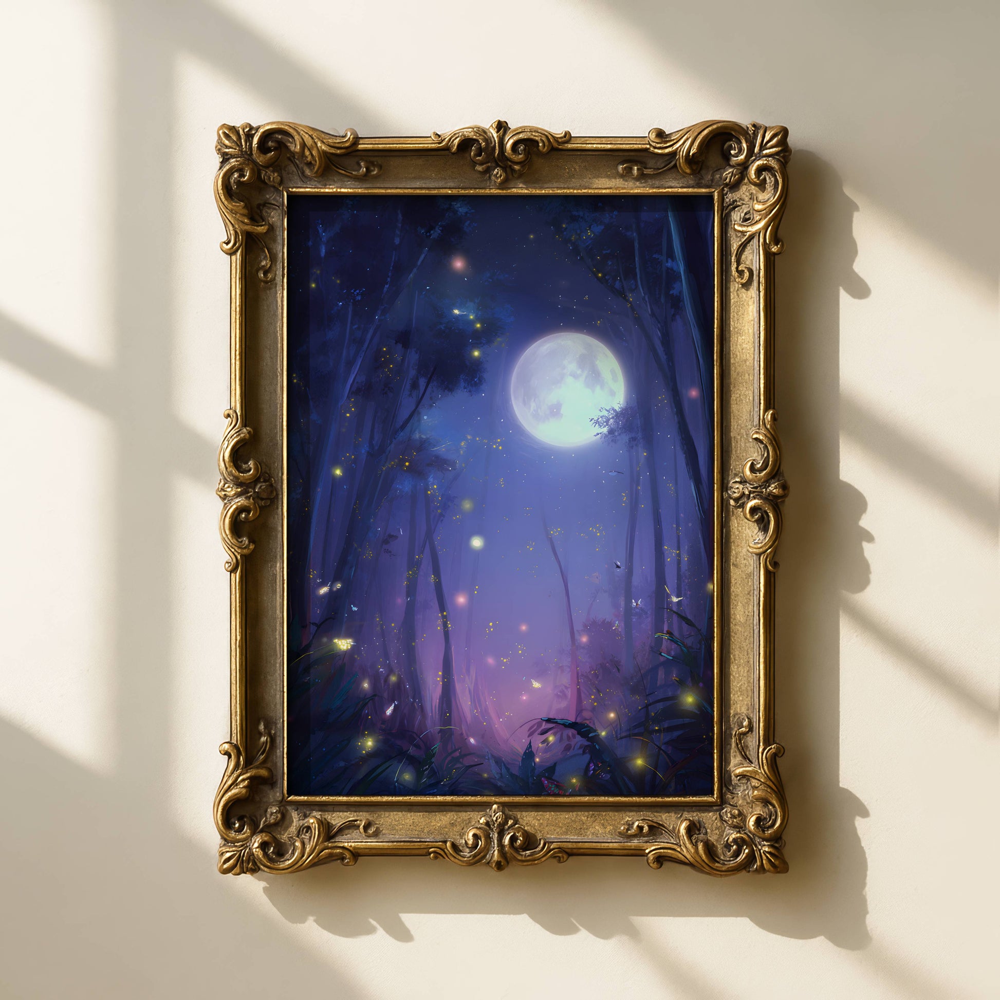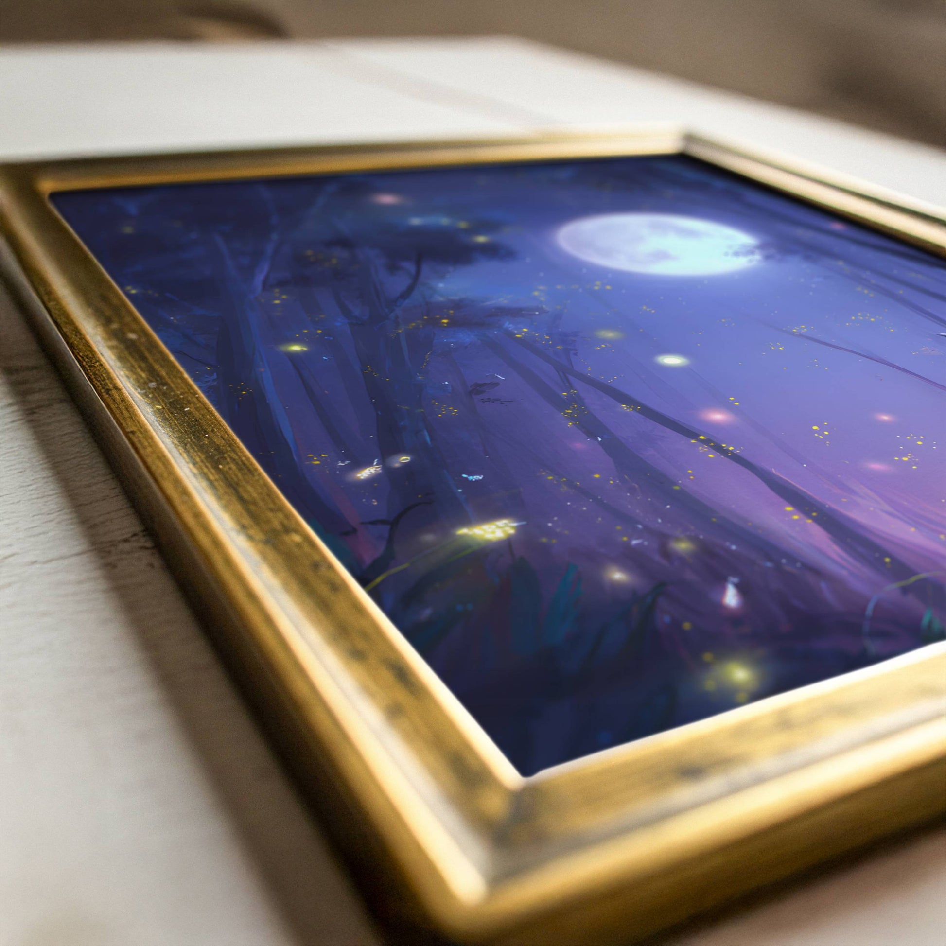 Enchanting Fireflies in a Forest Poster, Whimsical Lightning Bugs Print, Magical Glow Bugs Forest Wall Art, Dreamy Home Decor, Unframed
