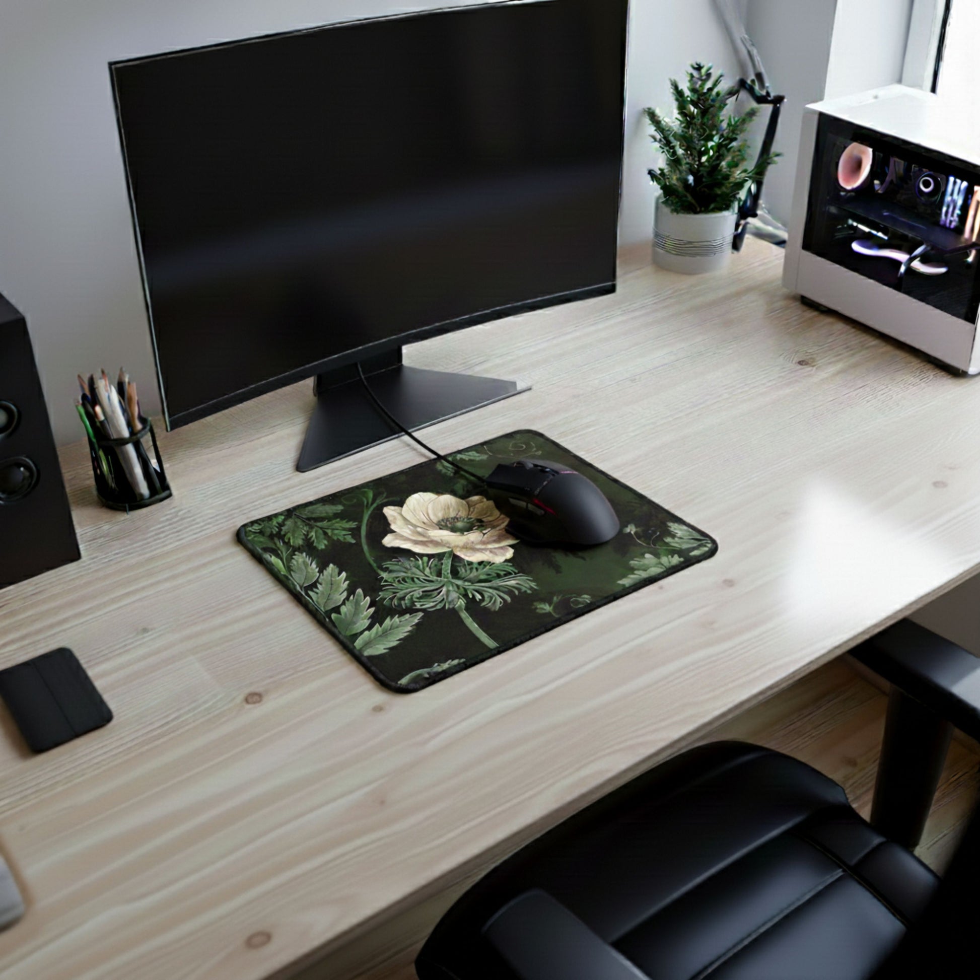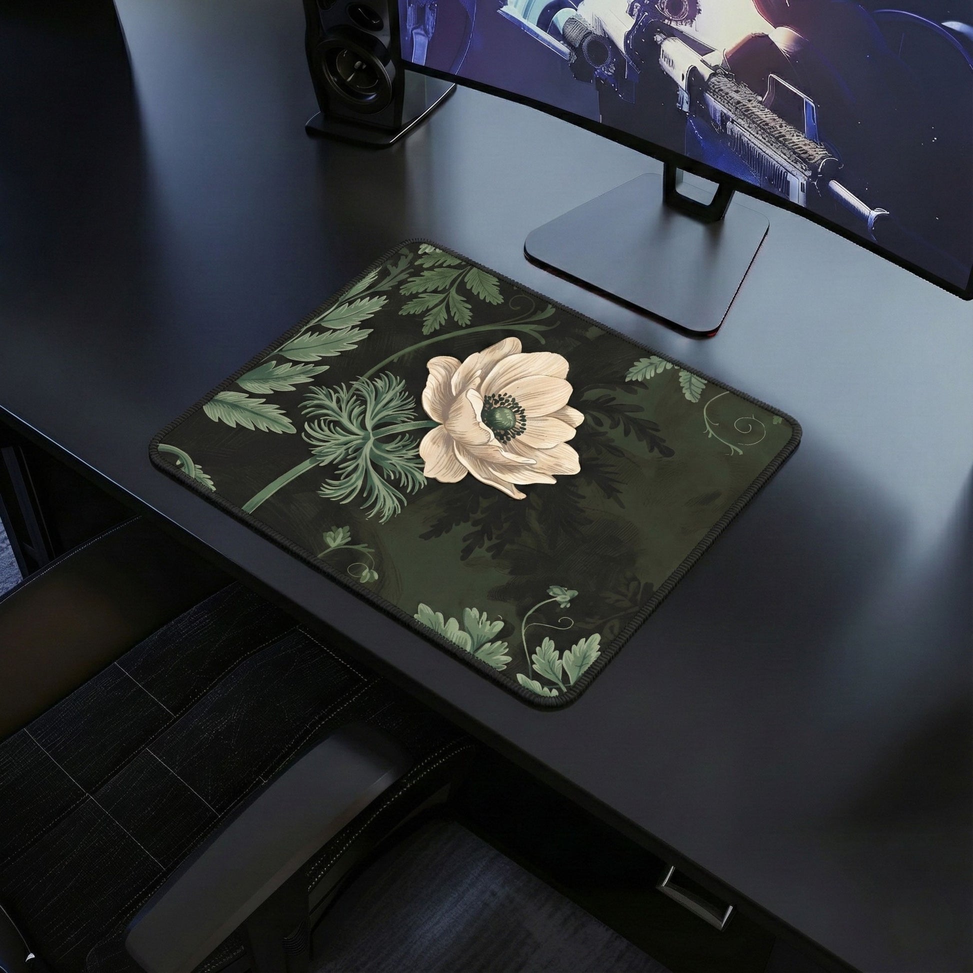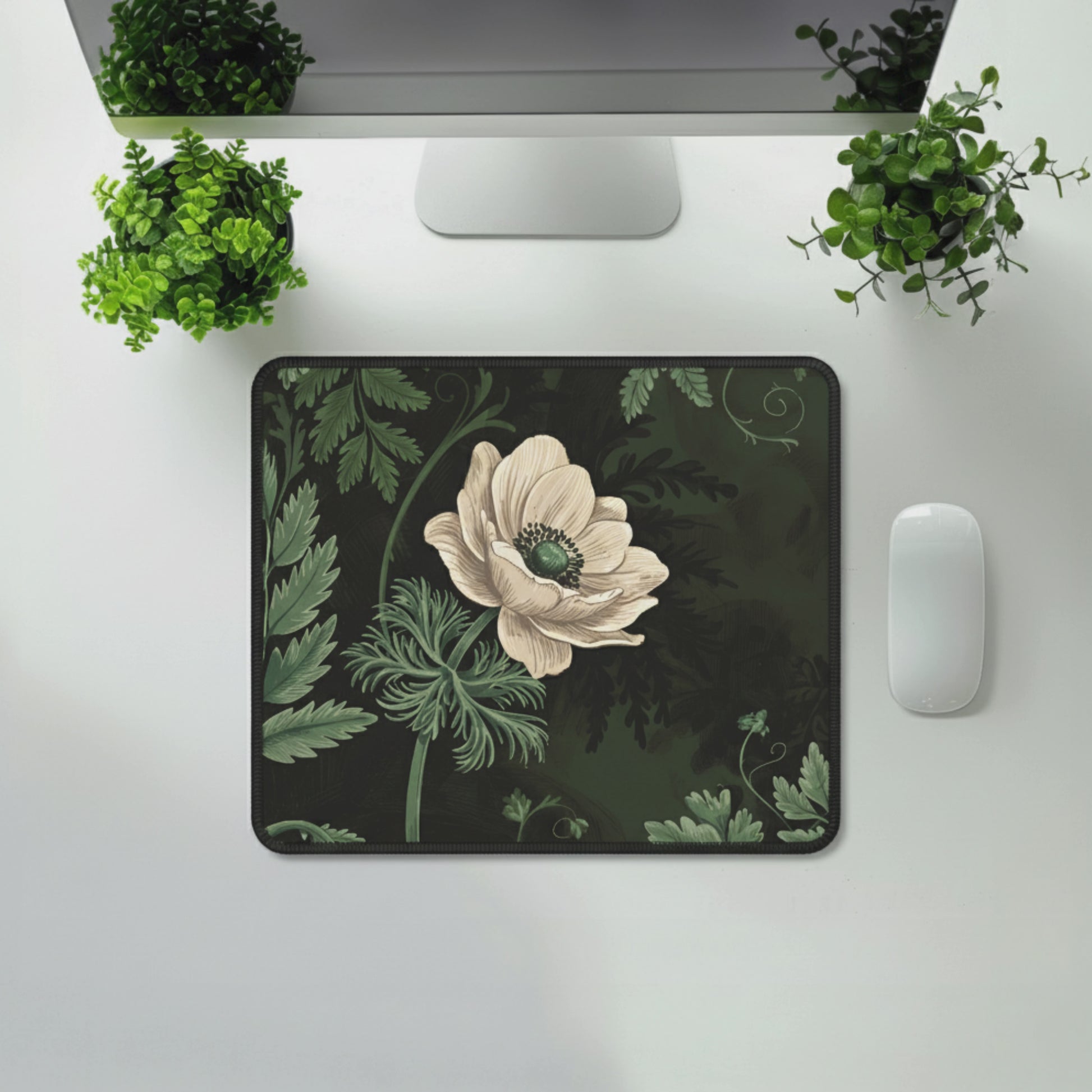 Sage Green Botanical Vintage Art Nouveau Mouse Pad, Dark Floral Green Plants Mousepad, Home Office Decor