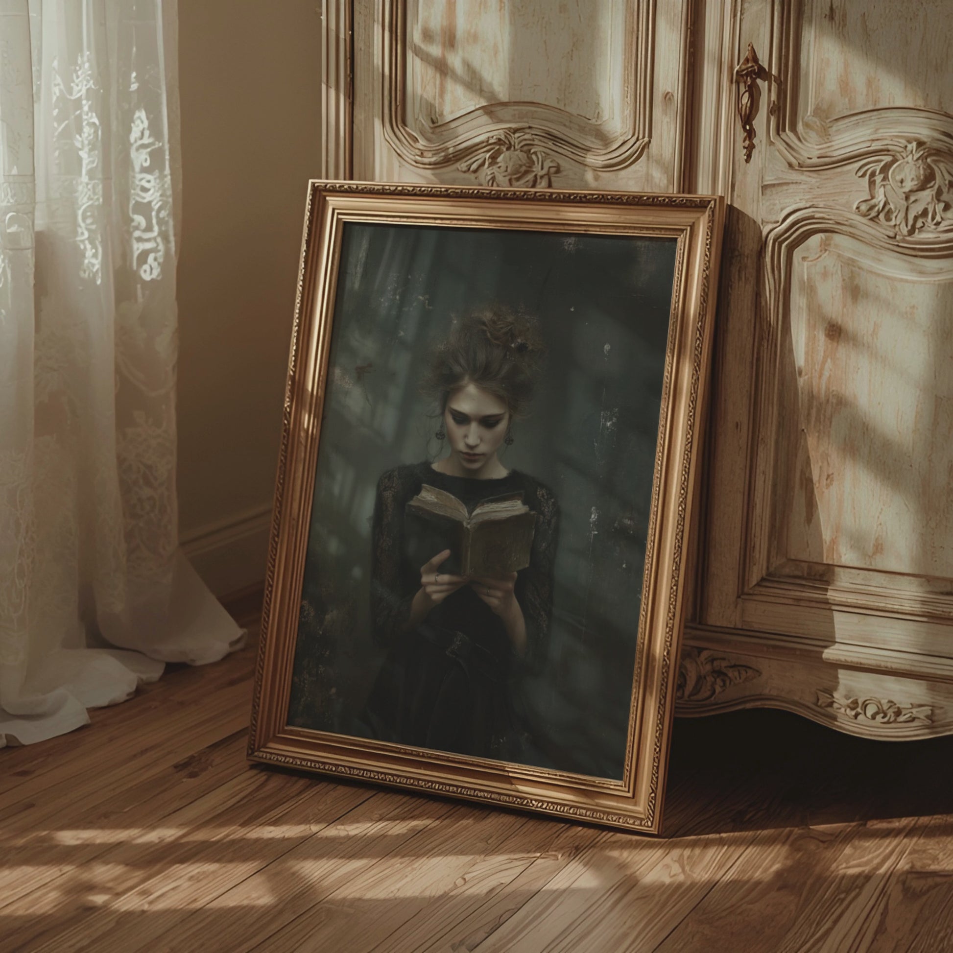 Victorian Woman Reading Book Poster, Bookish Print, Moody Dark Academia Wall Art, Librariancore Poster, Literary Book Lover Wall Art Decor, Unframed