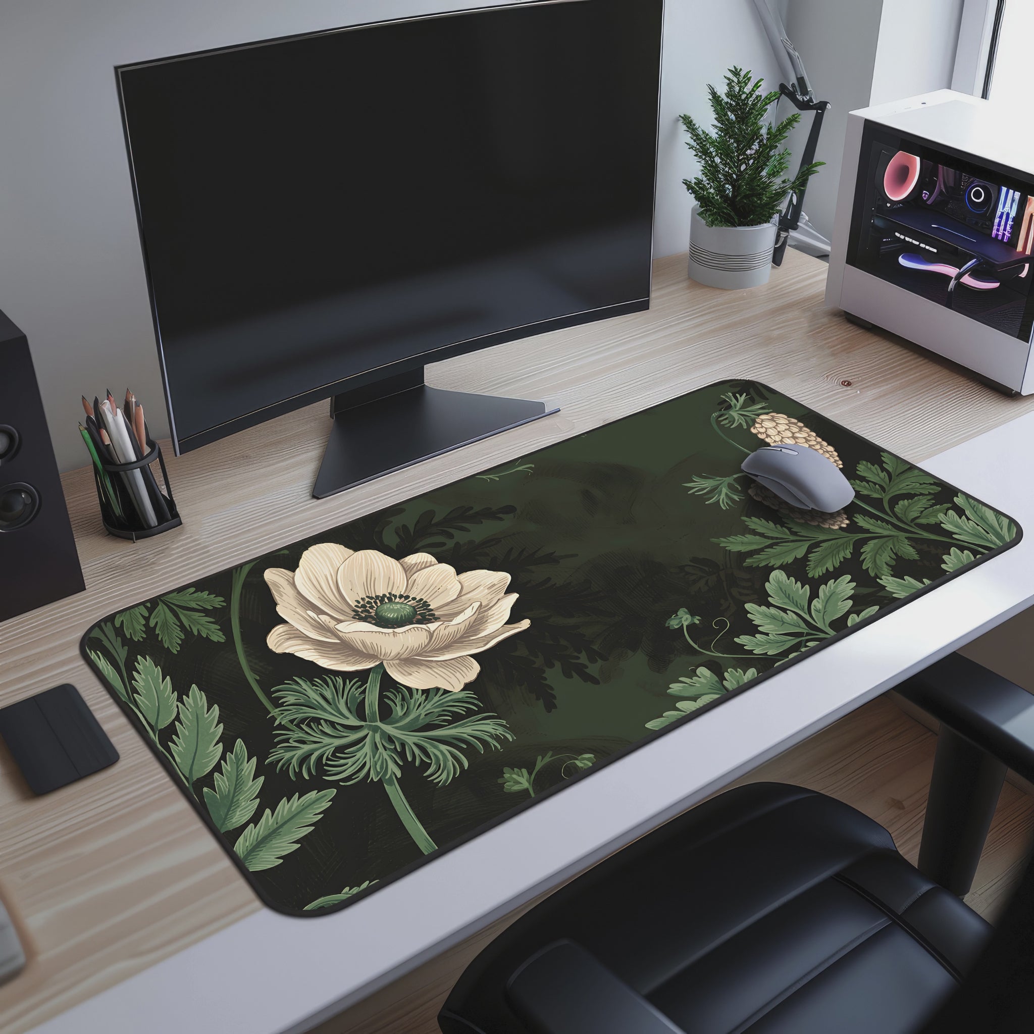 Vintage Art Nouveau Desk Mat, Botanical Large Extended Gaming Desk Mat, Floral Mouse Pad, Home Office Decor