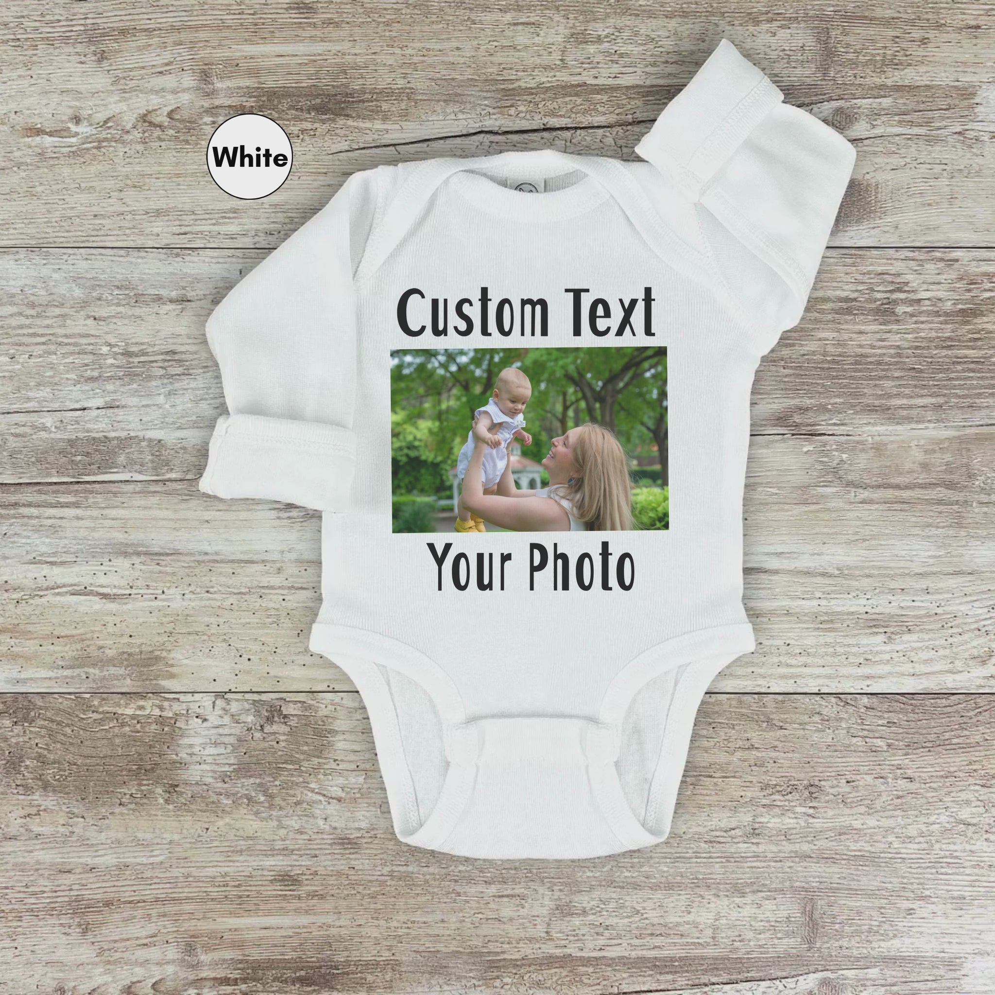 Personalized Front or Back Long Sleeve Bodysuit for Baby, Custom Photo and Text Baby Bodysuit