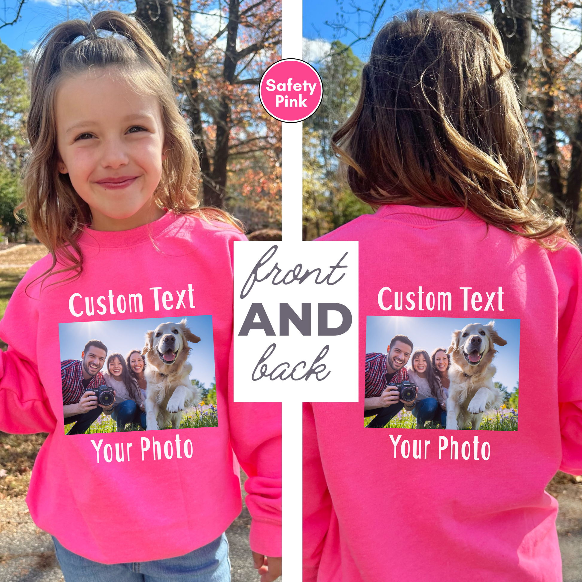 Personalized Front and Back Kids Sweatshirt, Custom Photo and Text Kids Sweatshirt, Add Your Image Words Logo, Kids Custom Photo Sweater