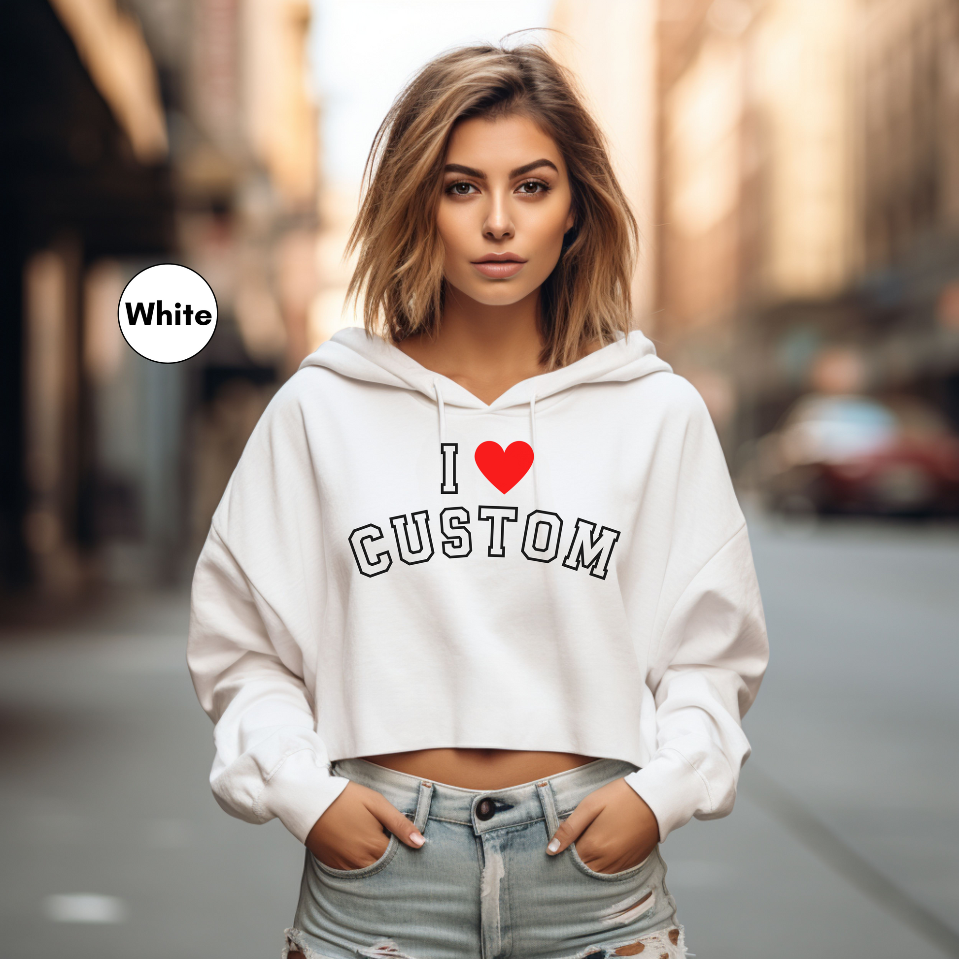 Personalized I Love Custom Y2K Tie Dye Cropped Hooded Sweatshirt for Women, I Heart Custom Y2K Hoodie, I Heart Your Text, Trendy 90s Top