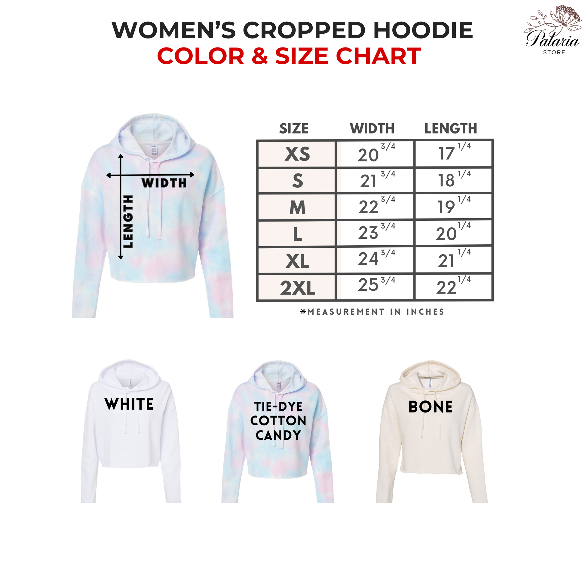 Women's Cropped Hooded Sweatshirt Measurements (Please see listing photos for full details)