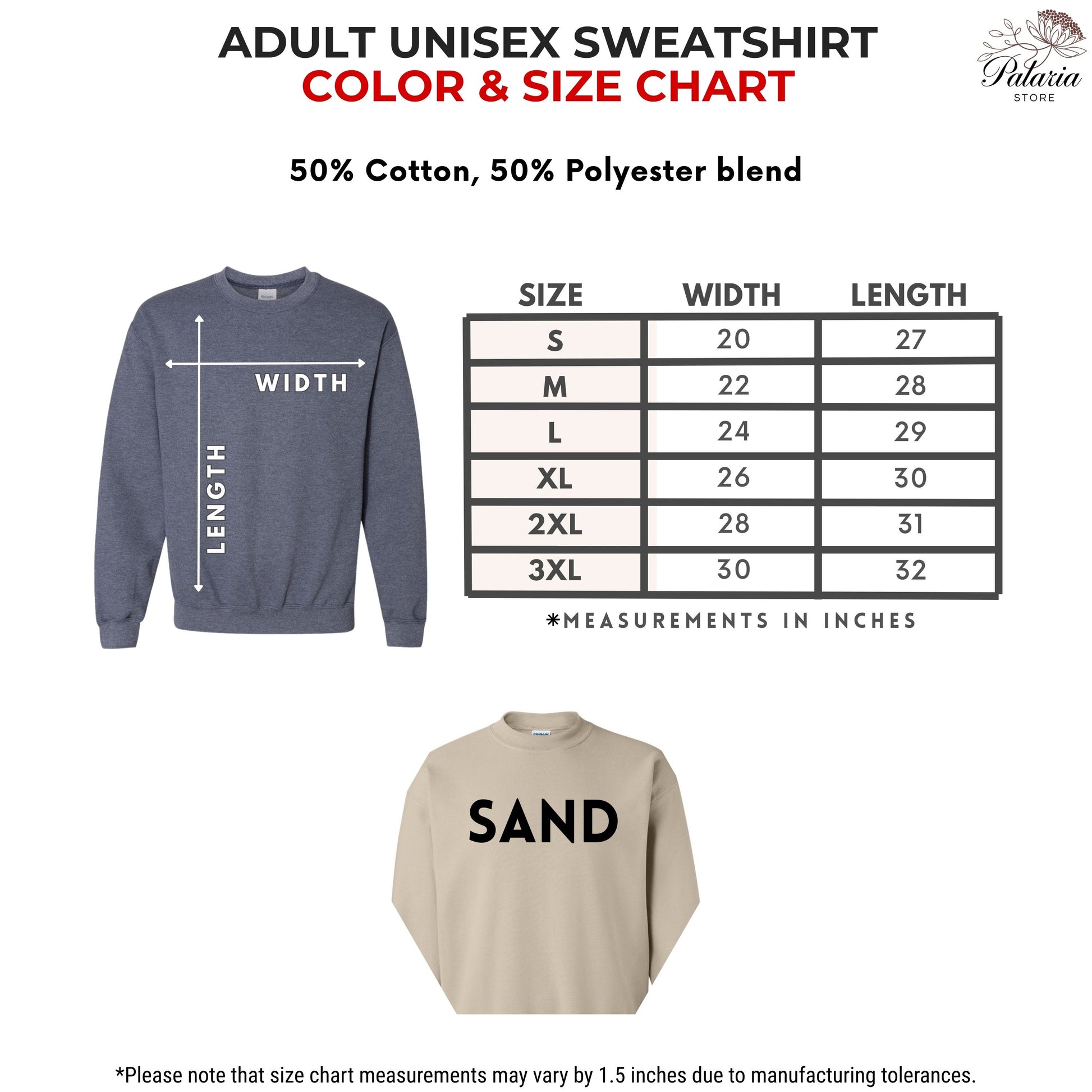 * 50% soft cotton, 50% polyester sweatshirts