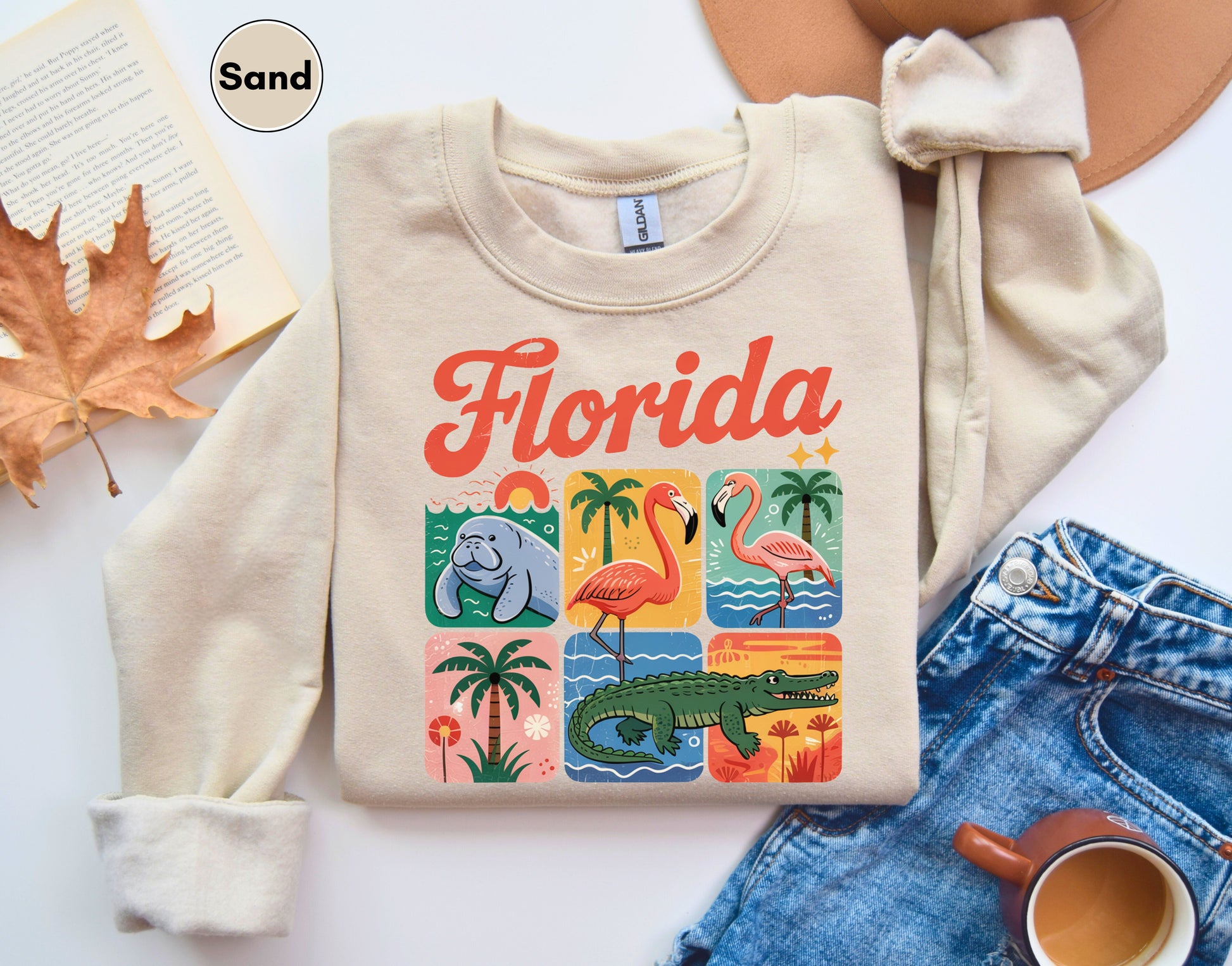 Florida Vintage Sweatshirt, Florida Lover Retro Animal Graphic Sweatshirt, Wildlife Manatee Flamingo Alligator Sweatshirt